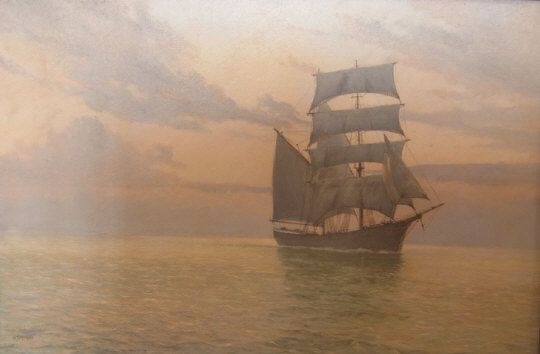 Gaff-rigged schooner on the open sea