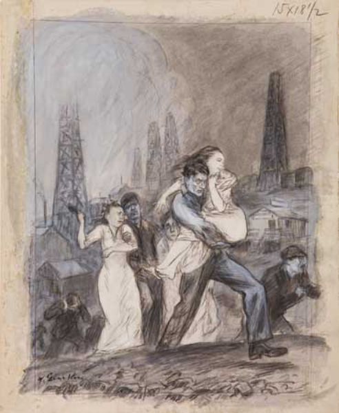 | Chalk and gouache on smooth, heavy cream wove paper. | |
