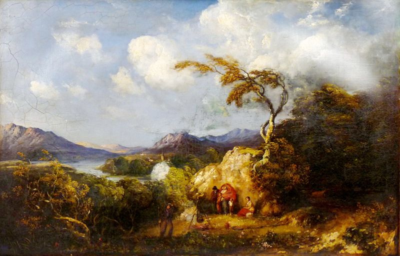 A GYPSY ENCAMPMENT IN A WOODED LANDSCAPE