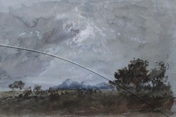 Landscape scene with mountainous backdrop
