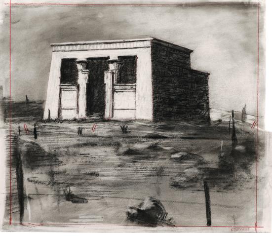 | Oil pastel and charcoal on two adjoined sheets of paper | |