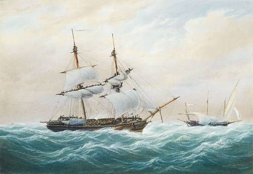 | A merchant brig running past a Spanish Xebec in a lively swell | |