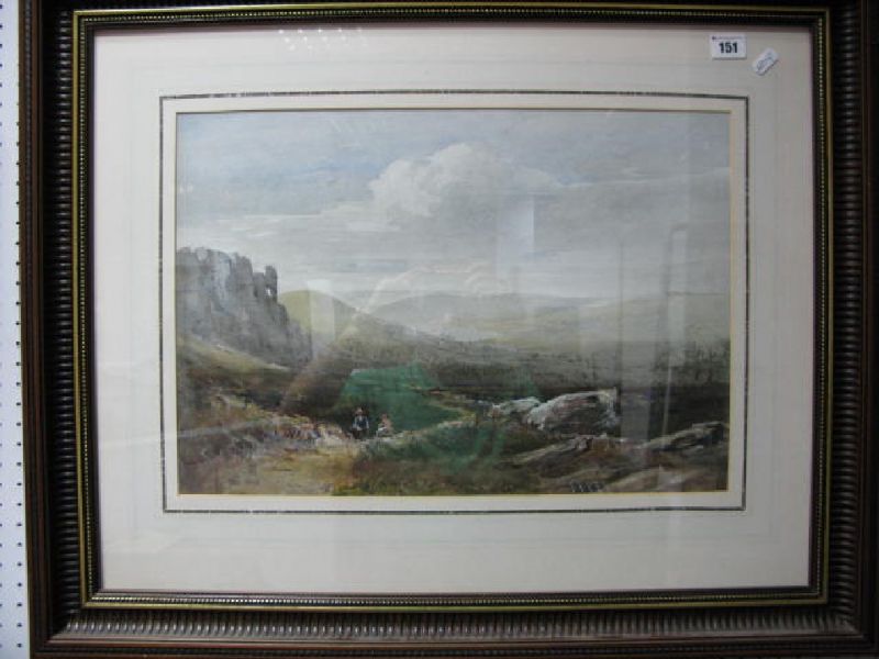 Derbyshire moorland scene with seated figures by path