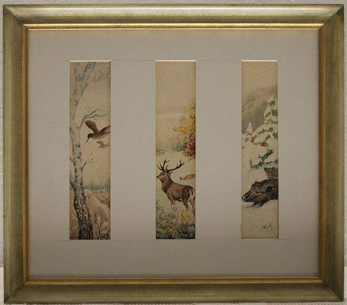 Hirsch, Wildschwein und Schnepfe in Landschaft