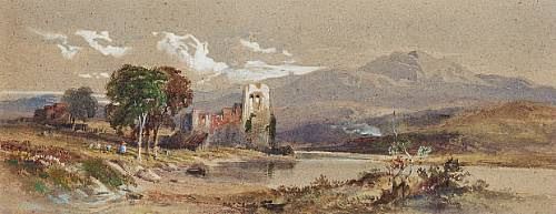 | A ruined abbey beside a loch together with another Scottish scene by the same hand | |