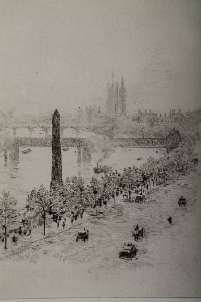 | Cleopatra's Needle, Charing Cross Bridge and Westminster from the Savoy Hotel | |