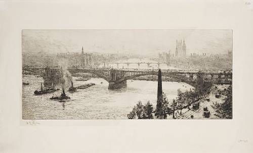| Cleopatra's Needle with the Charing Cross Bridge and Houses of Parliament Beyond | |