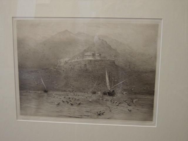 | FISHING BOATS AND GULLS OFF A COASTLINE WITH GREEK RUINS | |