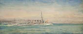 | H.M.S. Galatea and her sistership, H.M.S. Phaeton, sighting and bringing down a Zeppelin off the Schleswig coast, 4th May 1916 ( | |