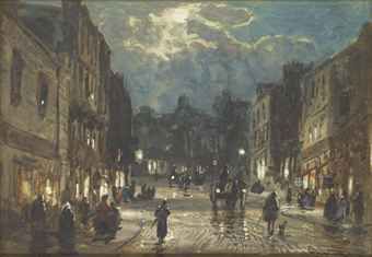| Figures and carriages on a street by moonlight (illustrated); and Figures and a horse-drawn cart on a street by moonlight | |