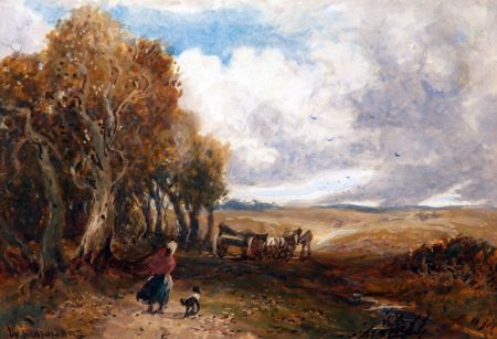 Figures, Horse and Cart with Dog in Windswept Landscape