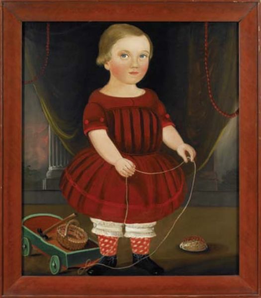 | FULL-LENGTH PORTRAIT OF YOUNG BOY WITH BLUE-GREEN WAGON AND COWRIE SHELL | |