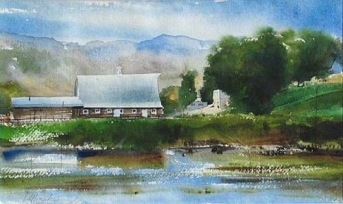 Farm along a river