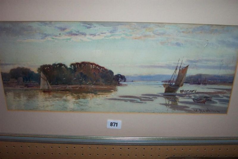 | an estuary scene at sunset with fishing boats, horse drawn cart etc | |