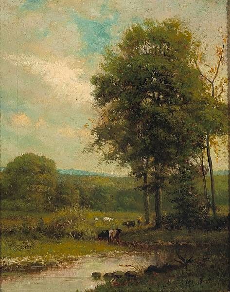A Meadow with Cattle Watering