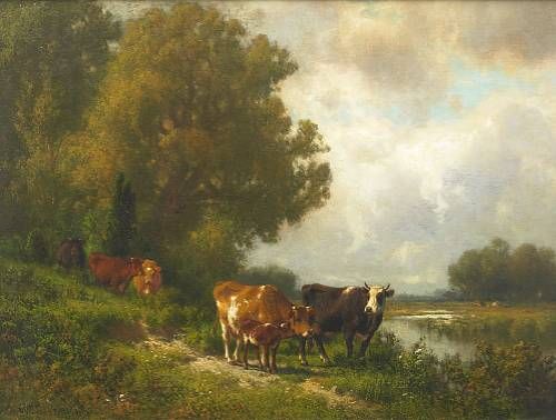 Family of Cattle by a Brook