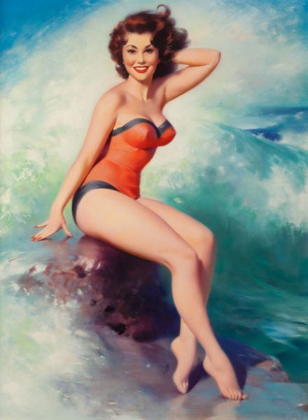 Pin-Up Posing Next to the Surf