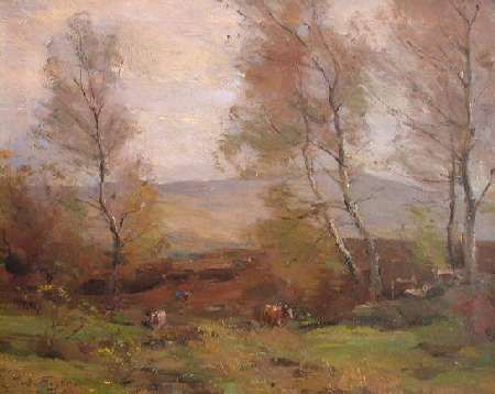 CATTLE GRAZING IN A WOODLAND CLEARING