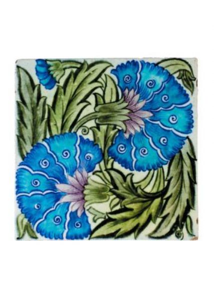 | Painting in Persian palette with two scolling carnation flowers in bloom and another in bud | |