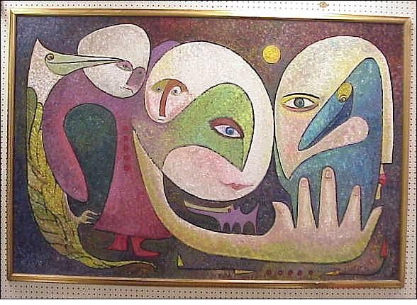 | a surrealistic depiction of figures and animals | |