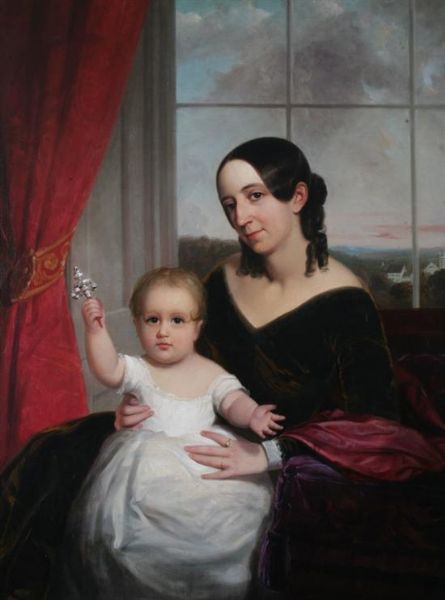 PORTRAIT OF MOTHER AND CHILD WITH SILVER RATTLE