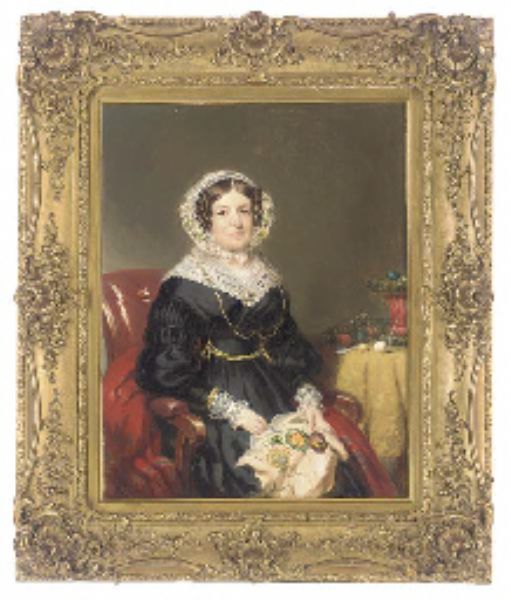 | Portrait of a lady, small three-quarter-length, in a black dress with lace trim | |