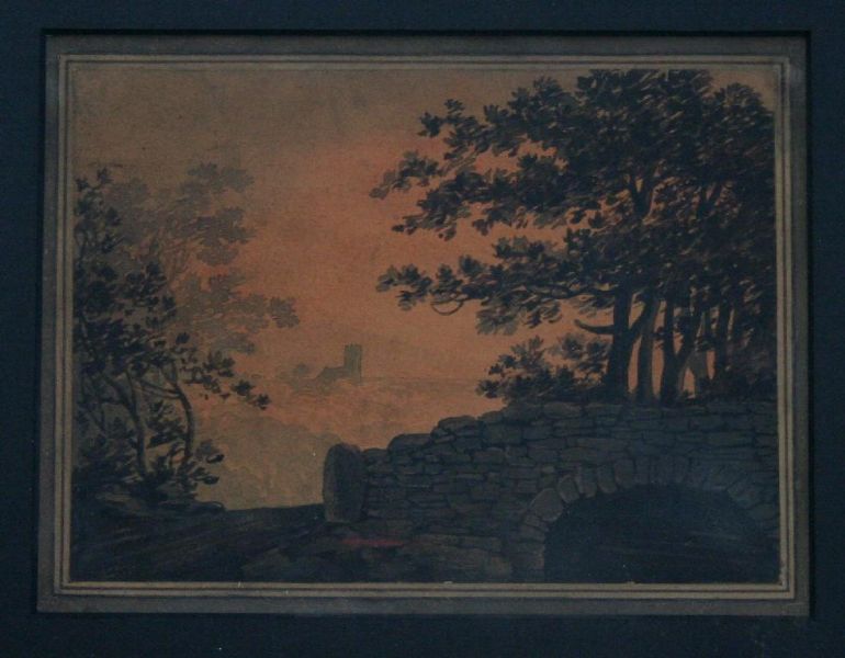 LANDSCAPE WITH OLD STONE BRIDGE AND A DISTANT CHURCH