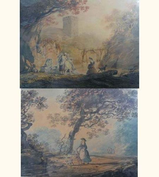 Scènes galantes sur fond de paysage