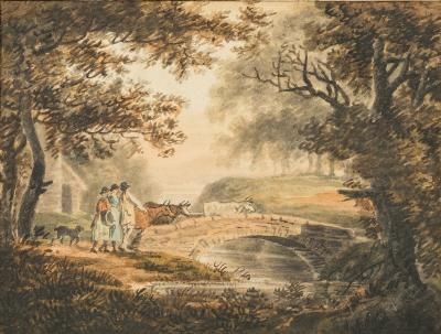 | Slapton Sands 1813; Calstock Ferry on the Tamar; Figures and cattle crossing a bridge in Wales | |
