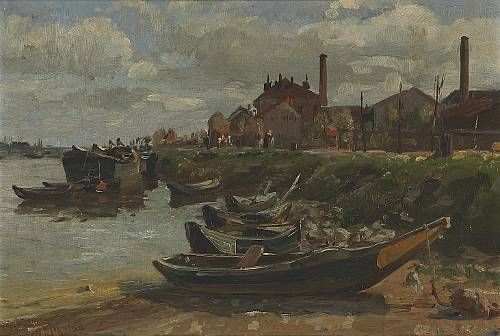 Boats Moored along a Riverbank