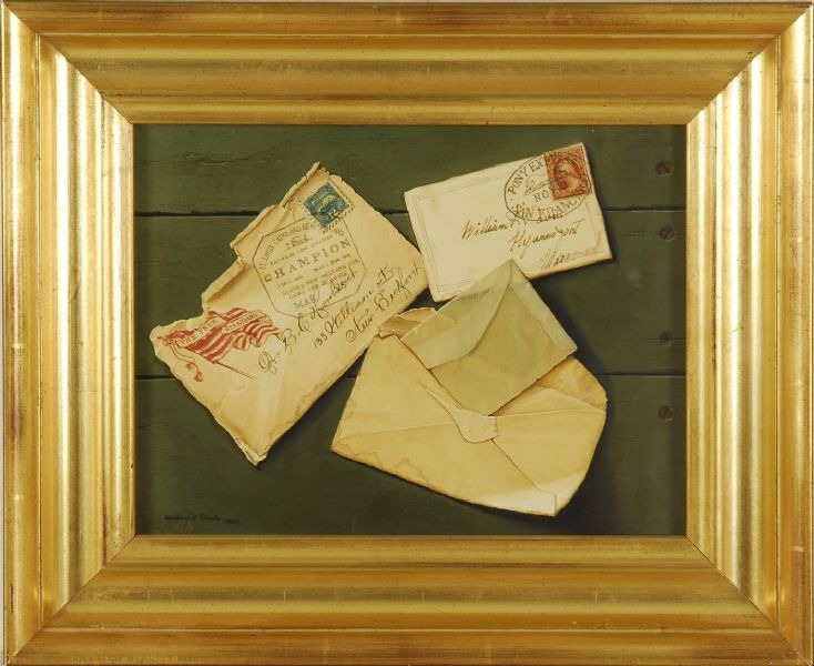 Trompe-l'oeil of three envelopes