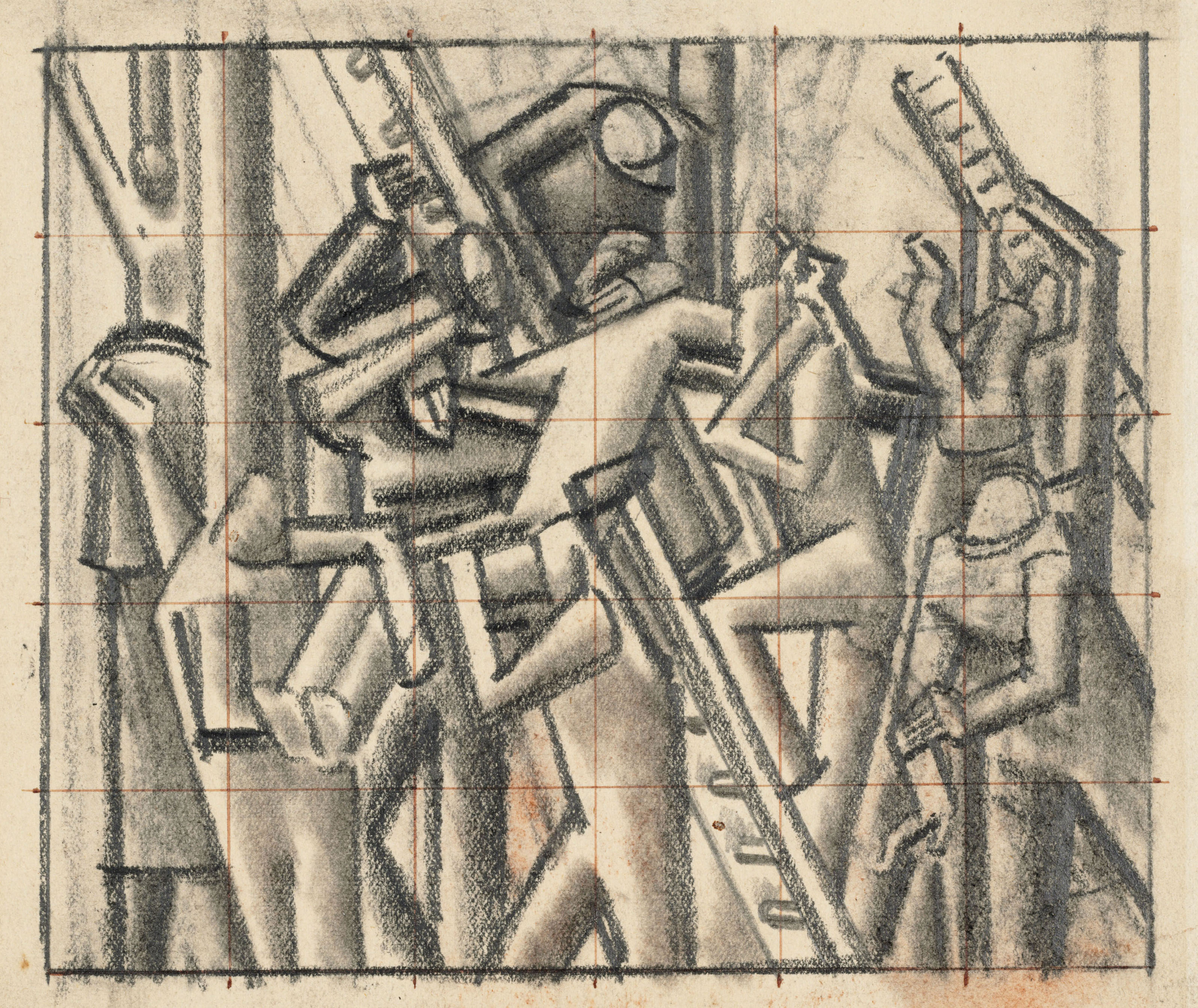 | Pencil ink and red chalk on paper, squared for transfer | |