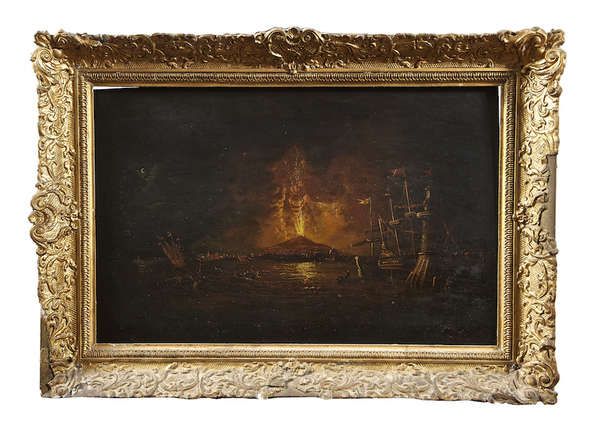 | A Capriccio Nightscape of the Bay of Naples with the Vesuvius Erupting | |