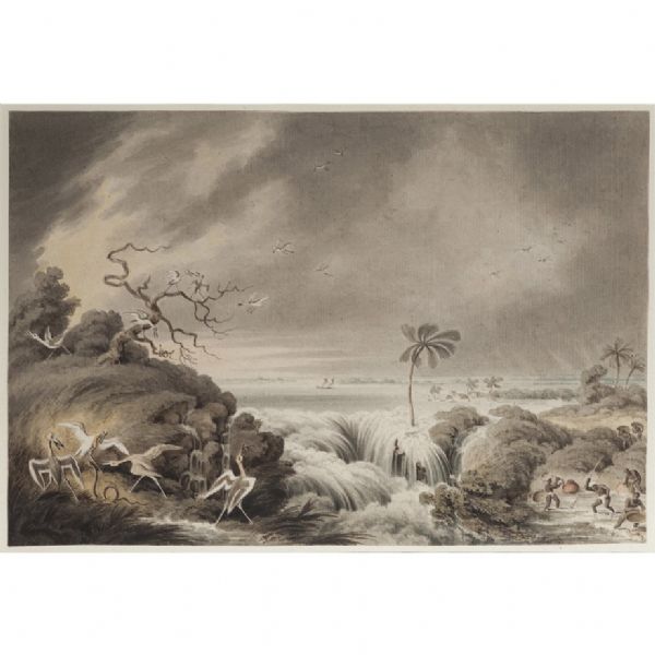 | THE GANGES BREAKING ITS BANKS WITH FIGURES SPEARING FISH | |