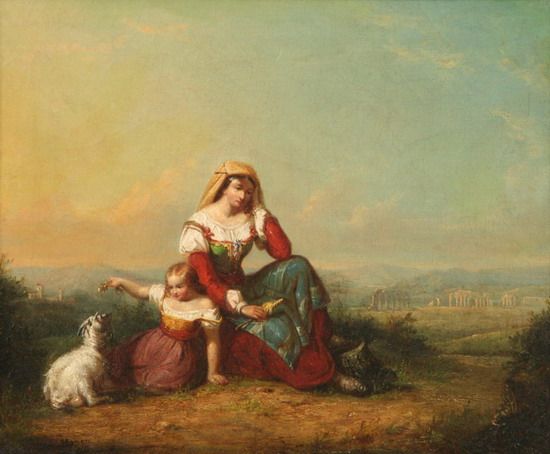 | MOTHER, DAUGHTER AND GOAT IN ITALIANATE LANDSCAPE | |