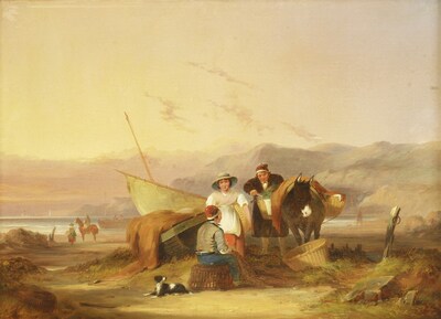 FISHERFOLK ON THE BEACH AT SUNSET