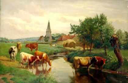 Rural Scene with Cattle Watering