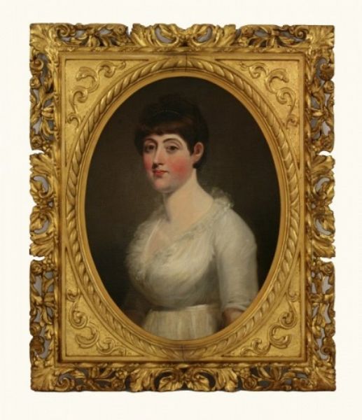 PORTRAIT OF MISS DALTON, HALF LENGTH, IN A WHITE DRESS