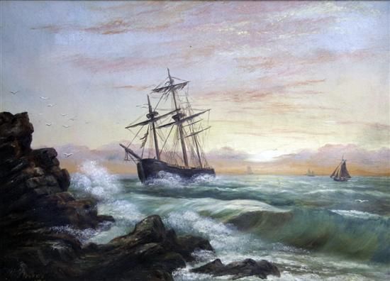 Ship off a rocky shore