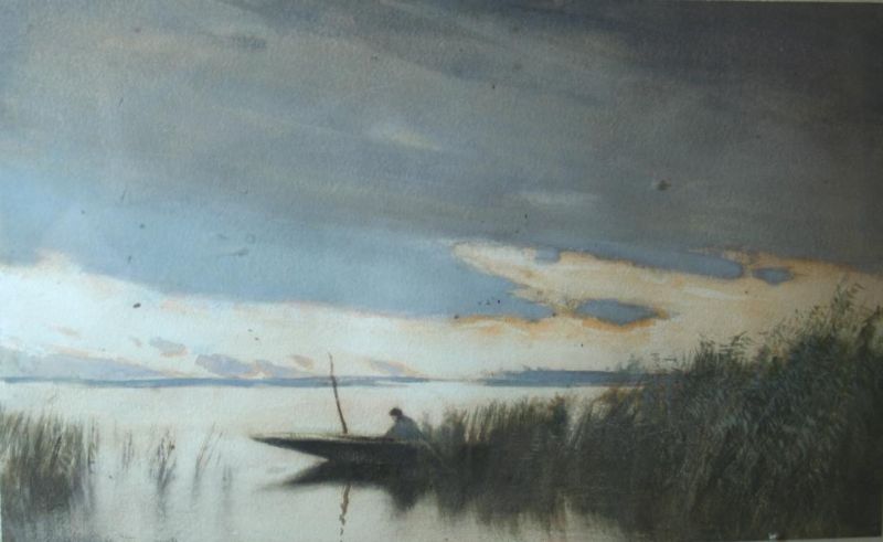 | MAN IN A PUNT BY REEDS, DUSK | |