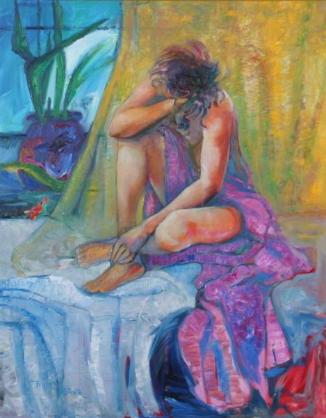NUDE DRAPED IN PURPLE CLOTH