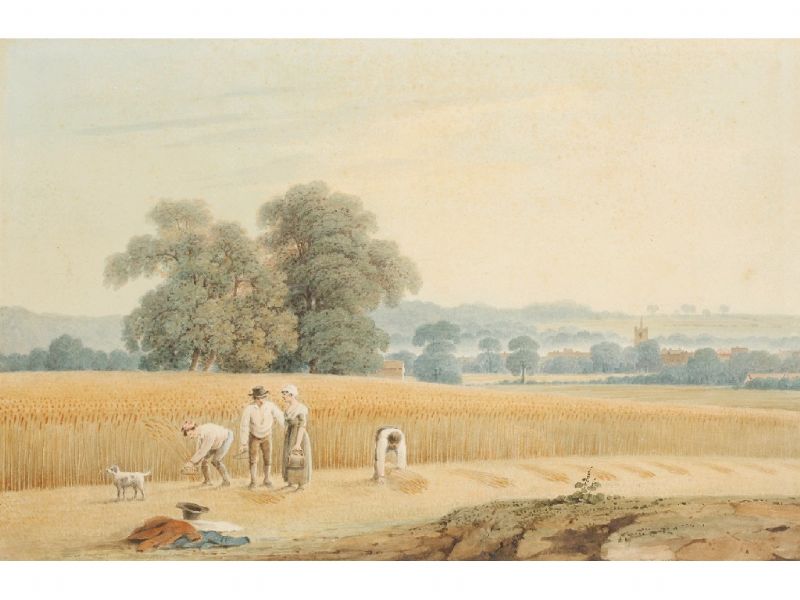 | A distant view of the town of Ware taken from a field adjoining the park, monogrammed and dated 1822 | |