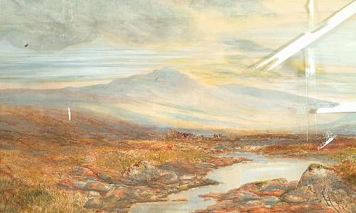 Extensive Dartmoor landscape with a figure on horseback tending to cattle,