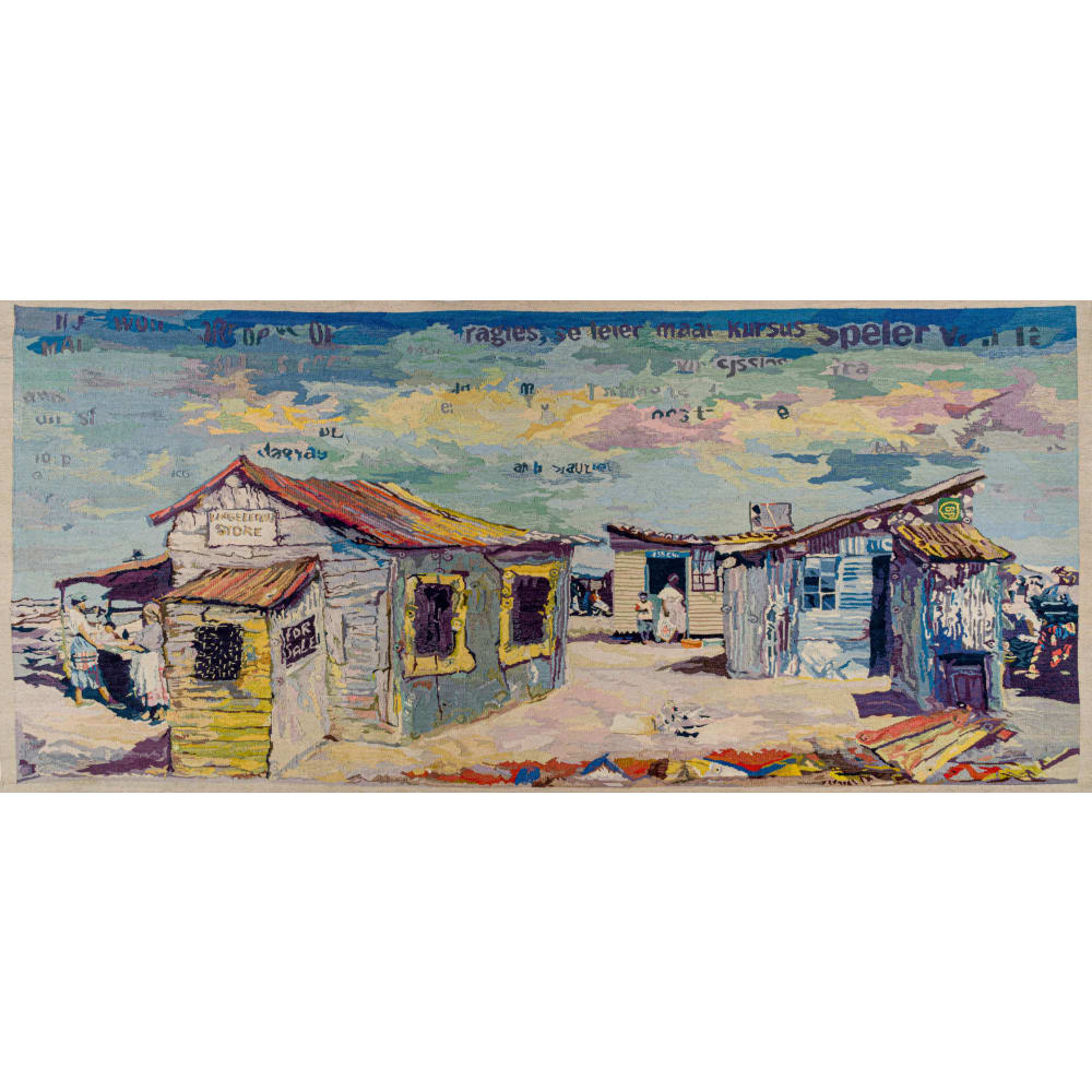 inscribed with the artist's name, the title, dated 1996 and 'woven in The Marguerite Stephens Tapestry studios' on a label and inscribed with the artist's name on a Bakos Brothers label. | |