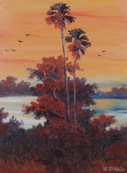 Florida Highwaymen sunset backwaters scene with stand of trees