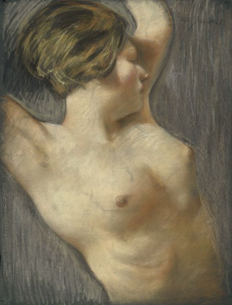 Weiblicher Halbakt, Gesicht seitlich geneigt