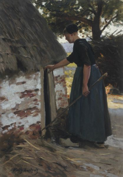 Boerin bij een plaggenhut
