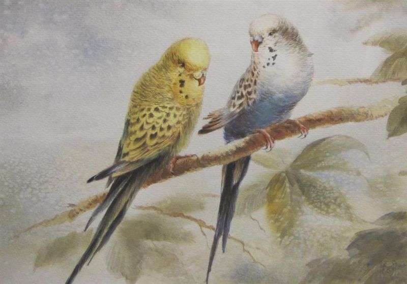Study of Blue and Yellow Budgerigars