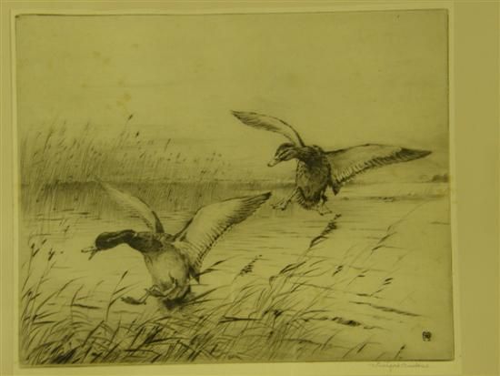 Ducks landing on a pond