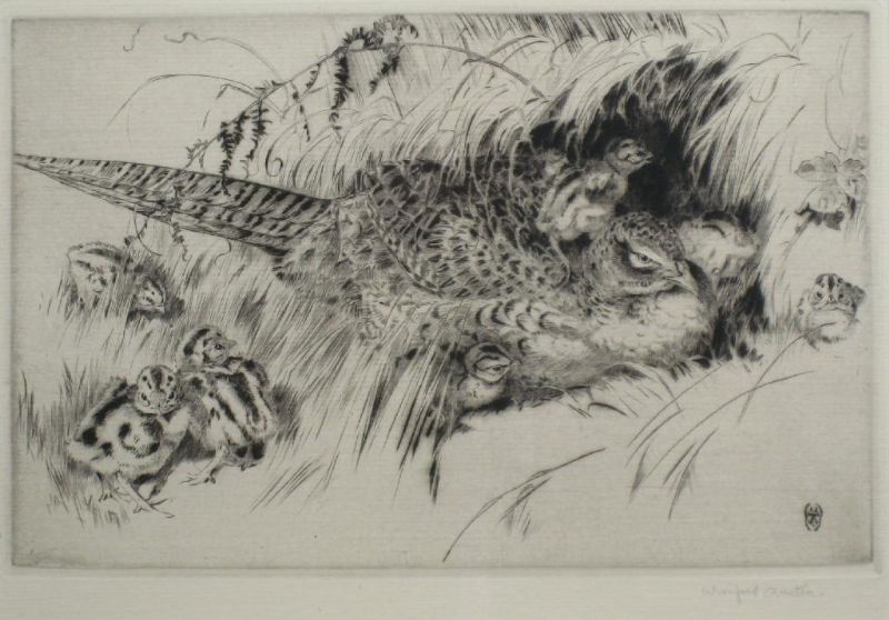 Hen pheasant with chicks